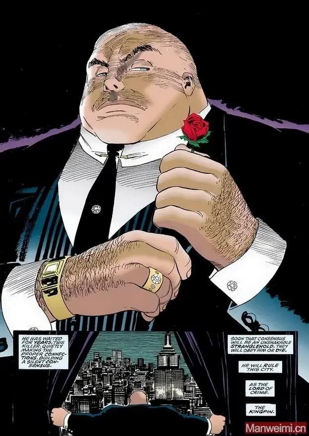 很多时候,威尔逊·菲斯克(Wilson Fisk)被许多人认为是一位冷酷而有成就的商人。对其他人来说,他或许是一个不值得尊敬的普通罪犯。但那些真正了解并敬畏他的人都认为他是纽约市所有犯罪活动的强大主宰。谈虎色变的外号“金并(Kingpin)”,不仅仅是力量的象征,也由一个梦想(黑道帝国)逐渐变成现实。