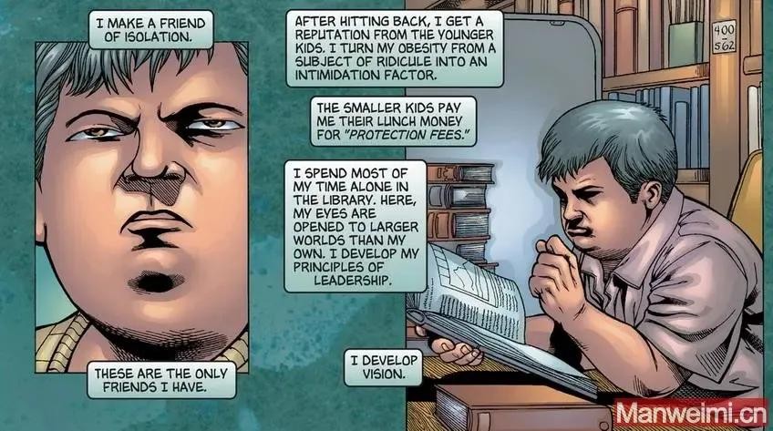 断断续续回到学校后,威尔逊变得更有攻击性,他决定反击那些过去欺负他的孩子。还击后,他逐渐在年轻孩子中间建立了声誉,并开始将自己的肥胖变成一种恐吓因素,导致较小的孩子会支付午餐费来作为保护费。