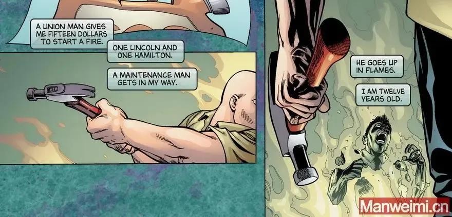 12岁那年,因一名工会男子向威尔逊提供15美元让其纵火,结果导致他被一名维修工人追问时,他用羊角锤杀死了这名男子并犯下了第一起谋杀案。
