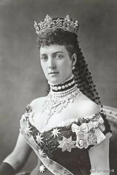 话说得有点远了,拐回来。亚历珊德拉虽然和丈夫因为情人而郁闷,但是作为威尔士王妃,该做的一样没有落下。她生育了6位子女,出席各种活动,在丈夫登基后,更是将英国以及王室,从沉重的维多利亚后时代解脱出来。王室和民众再也不用和孀居只穿黑衣的女王那样,过着没有颜色、沉闷无聊的生活。亚历珊德拉以她姣好的容貌,出众的气质将英王室的华服礼服衬托得更加灵动美丽。上流社会开始了新的欢快的生命,最著名的就是现在还能看到的“颈”链,亚历珊德拉就是这个装饰品的开山鼻祖,其实只是为了遮盖自己那里的一个小伤疤。