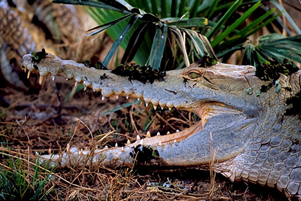 除了这个长处之外,古巴鳄还兼具了一般鳄鱼最大的优势—— 一口獠牙,鳄鱼的咬合力是有目共睹的,任何动物都会被那尖刀般牙齿穿透,一旦咬中了猎物,很快就能将其碾成粉末。
