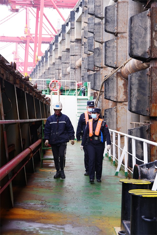 为确保国际货物船舶通关顺畅,汉口出入境边防检查站持续优化武汉阳逻港通关流程,简化检查手续,努力推动通关大提速。
