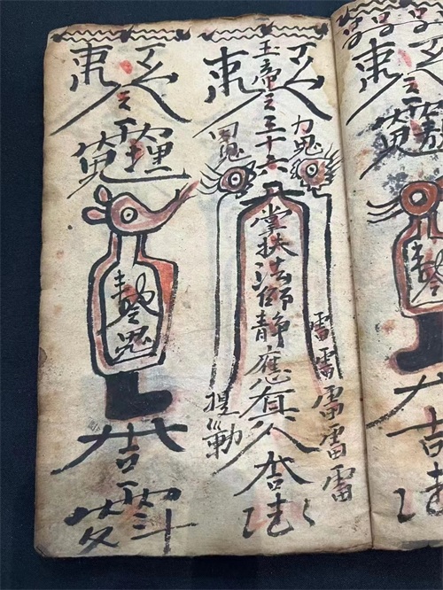 除瘟止病符,民国,内有大量道教彩绘符咒图画,书中记录了瘟疫符、收瘟符、戒绝瘟煞符等大量道教内秘符法,21个筒子页。