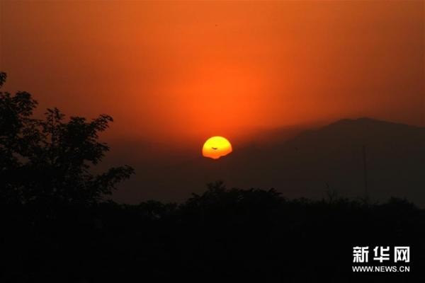 这是10月7日在巴基斯坦西北部城市白沙瓦拍摄的落日。 新华社发(赛义德·艾哈迈德摄)