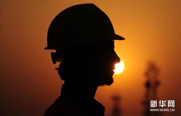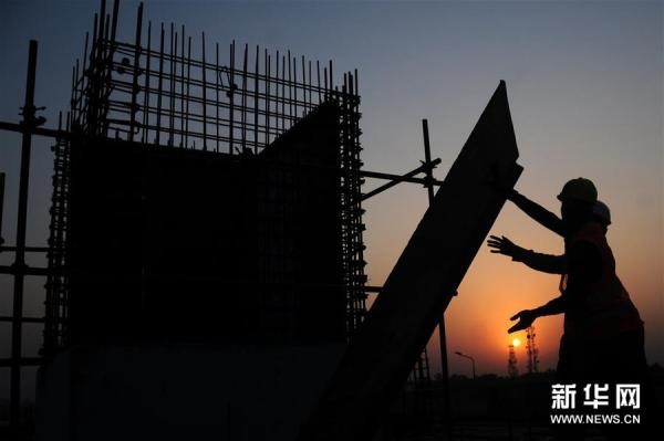 10月7日,在巴基斯坦西北部城市白沙瓦,工人在落日中工作。 新华社发(赛义德·艾哈迈德摄)