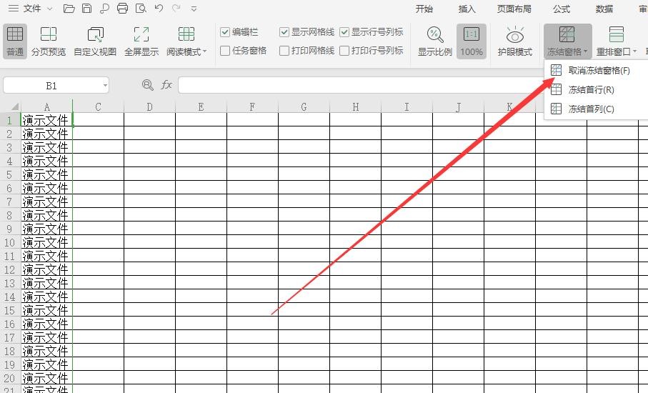5.要取消锁定,再次单击“冻结窗格”并选择“取消冻结窗格”。