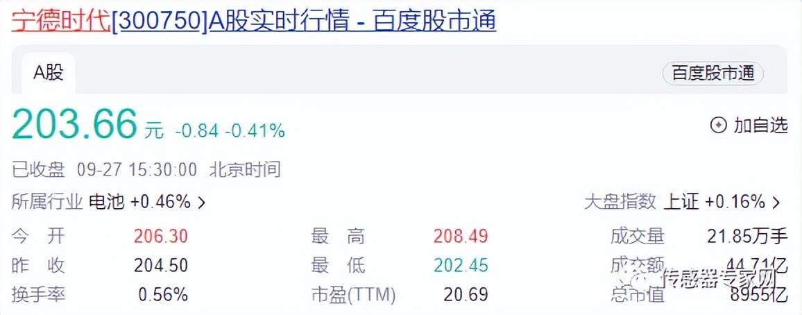 受此消息影响,宁德时代股价再次下跌,截止今日(9月27日)收盘,报203.66元/股,市值为8955亿。