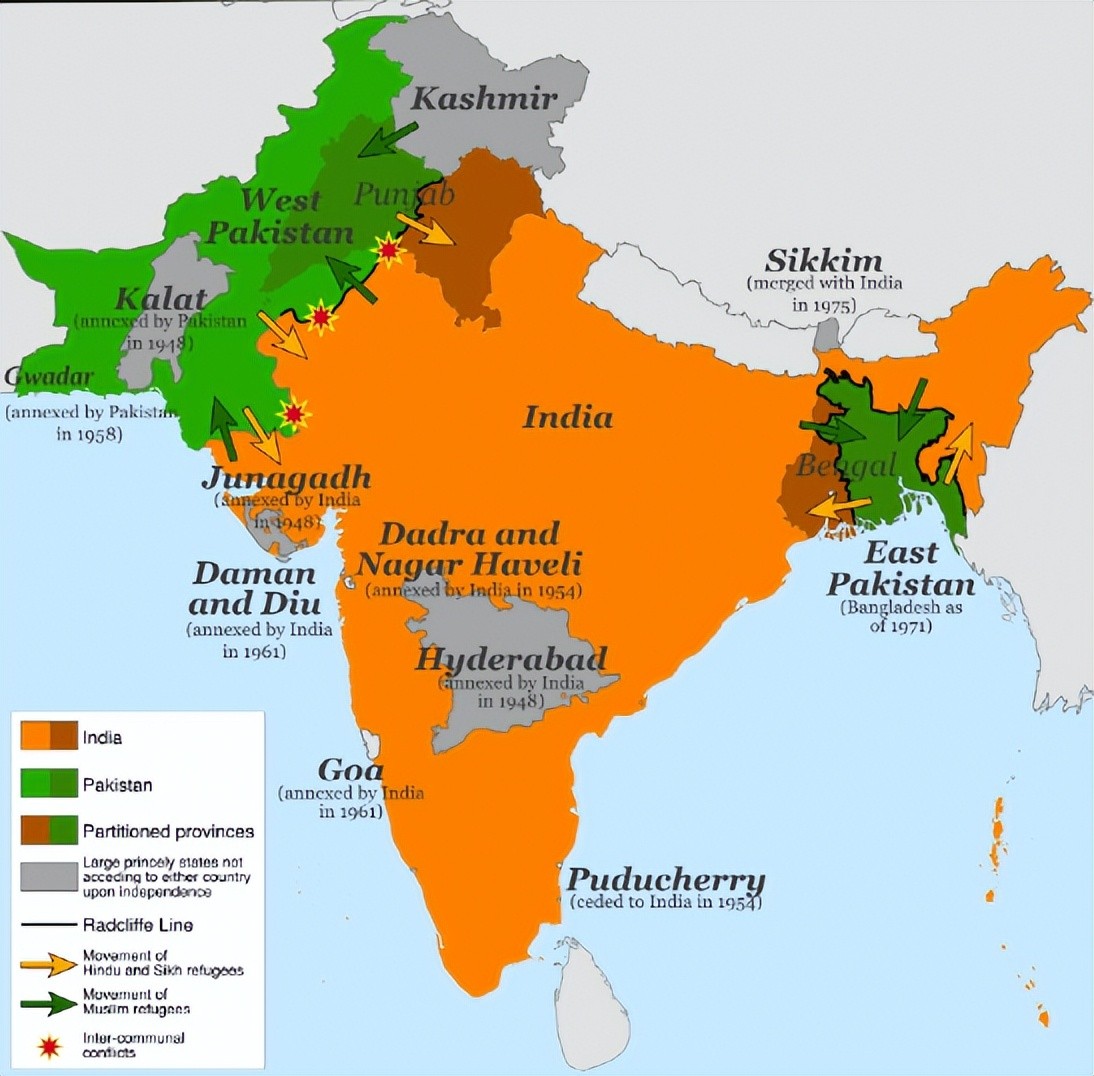 19世纪中叶,印度次大陆全境沦为英国殖民地,进入20世纪,随着圣雄甘地的“非暴力不合作运动”的展开,印度的各类独立运动此起彼伏,使得英印政府疲于应对,二战之后,英国国力衰弱,被迫同意印度独立,1946年,英国当局宣告印度成为“自治领”,原先,英国设想成立一个统一的印度,然而,印度国内,穆斯林与印度教徒矛盾重重,特别是以真纳为首的印度穆斯林联盟,强烈反对建立统一印度的计划,而主张穆斯林独立建国。次年,英印总督——王室成员蒙巴顿被迫提出所谓“蒙巴顿方案”(或称印巴分治),把英属印度分成以印度教徒为主的印度斯坦和穆斯林为主的巴基斯坦两个自治领,1947年8月14.15日,印巴分别成立自治领,然而,虽然印巴分治,双方的矛盾并没有得到妥善解决,克什米尔问题的归属问题成为双方矛盾的焦点。