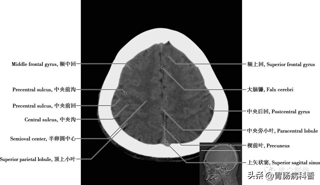 图1-1-2 经上矢状窦轴位切面