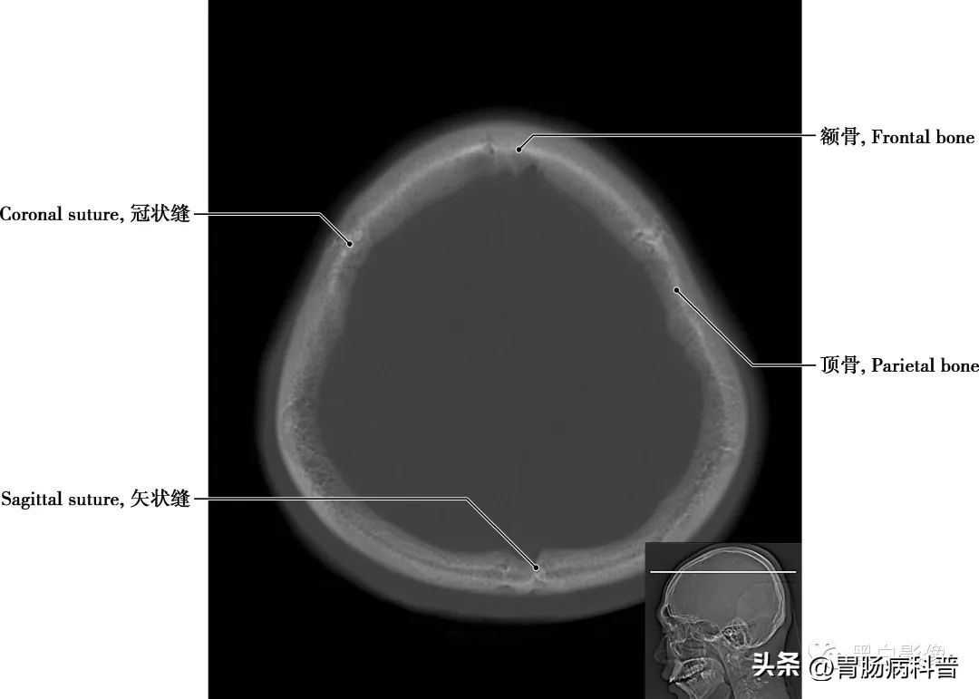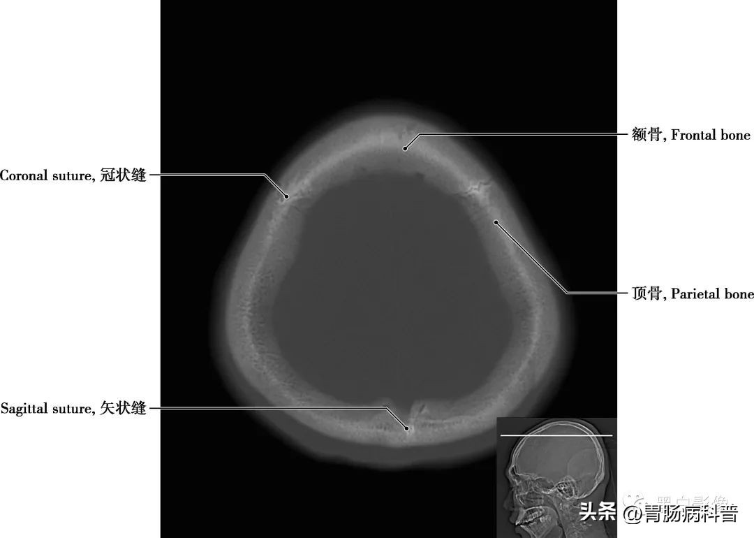 冠状缝 顶骨与额骨之间的骨缝,呈冠状位走行