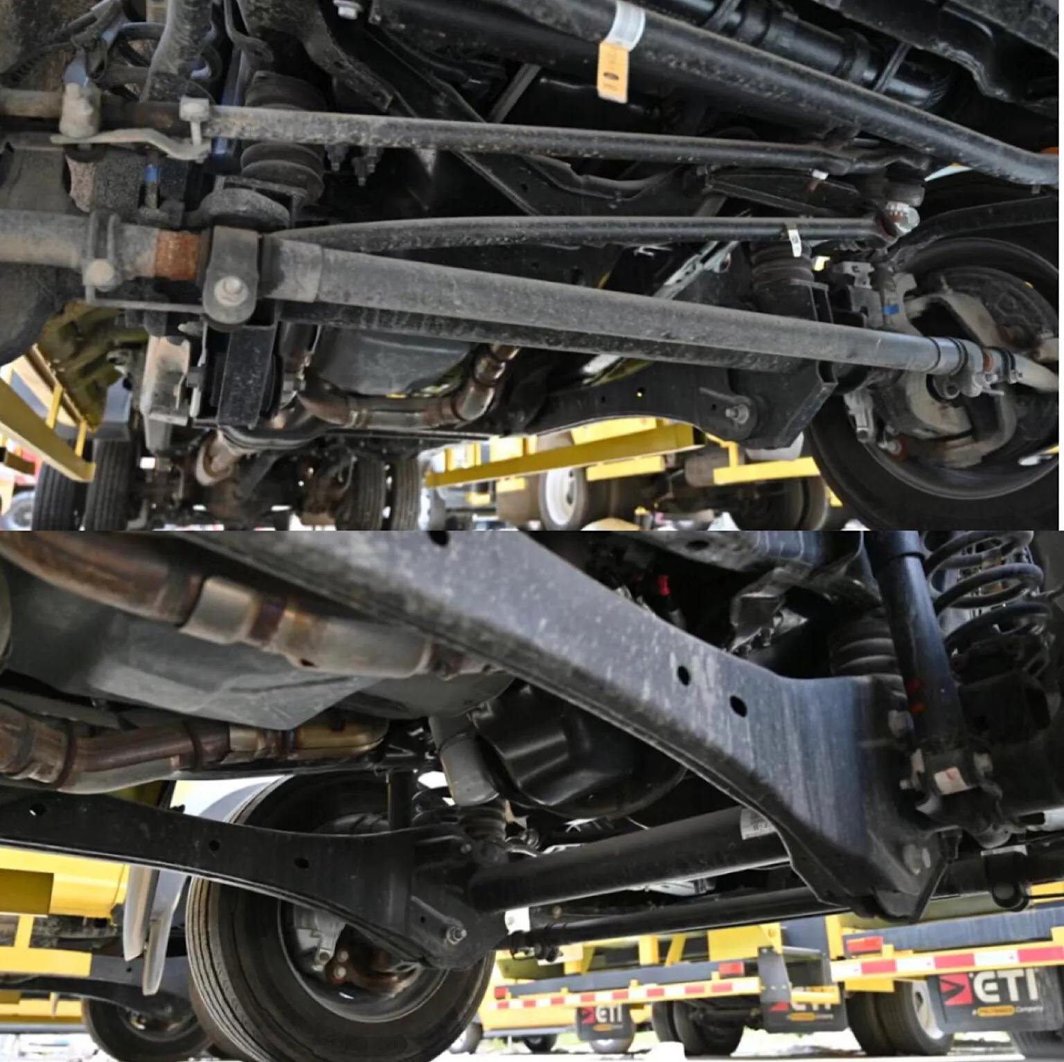在底盘悬挂方面,F-550皮卡采用非承载结构,民版车型主要以4×2驱动模式为主。悬挂更接近于卡车那样“螺旋弹簧+液压减震筒+板簧”的形式。其前悬的结构就是“螺旋弹簧+液压减震筒”;后悬挂以多片板簧为主要承载方式,车桥则带有单级减速装置,而且前后桥均配置了防倾稳定杆。