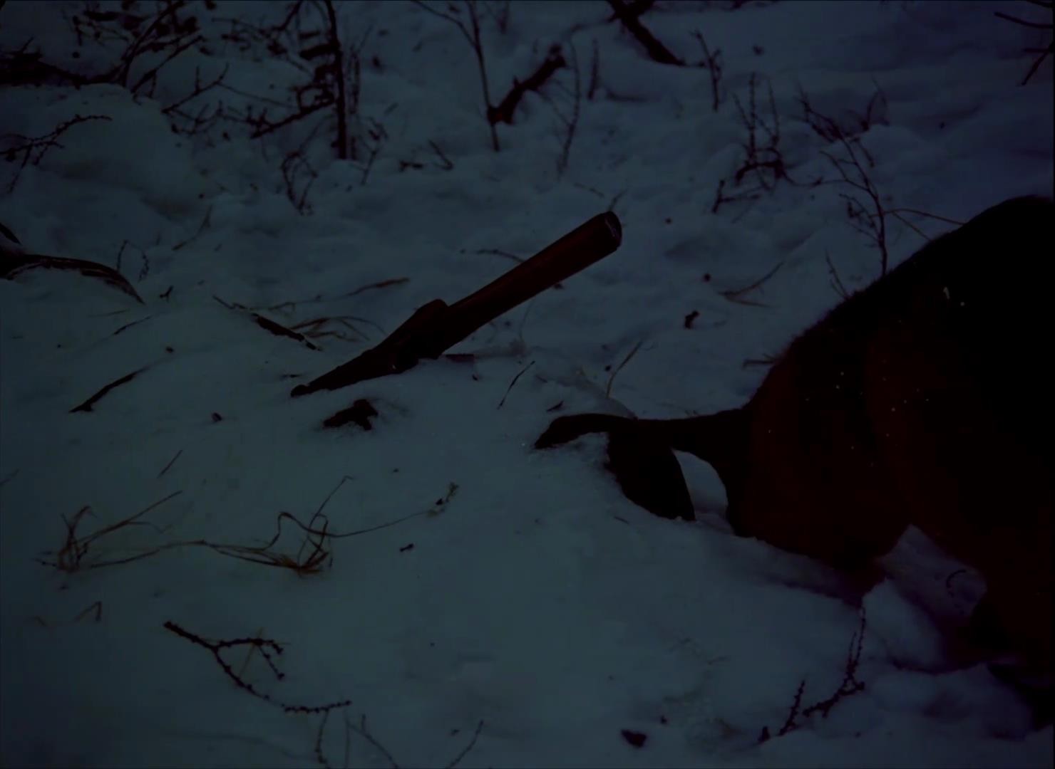 回来时候遇到暴风雪迷路被淹没在大雪中,军犬双双找到了他