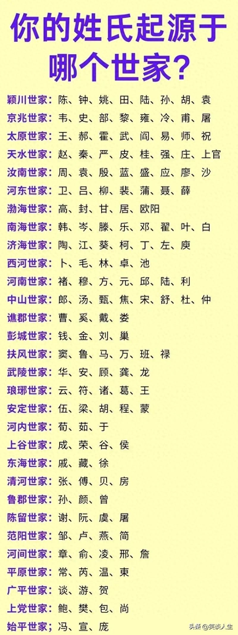 此外,太原、天水、汝南、河东、渤海、南海和济海等世家,也都在中国历史上留下了浓墨重彩的一笔。这些世家孕育出的姓氏,如同璀璨的明珠,镶嵌在中华文化的宝库中。