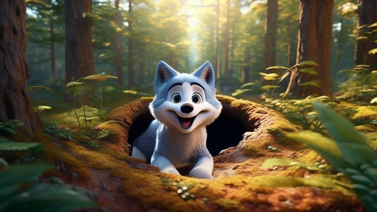 很久很久以前,在一个遥远的森林里,住着一只可怕的大灰狼。他的眼睛是绿色的,毛茸茸的尾巴摇来摇去,嘴里露出锋利的牙齿,看起来十分可怕。小动物们一听到大灰狼的名字就吓得浑身发抖。