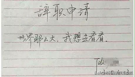 说到令人印象深刻的辞职理由,“世界这么大”绝对可以榜上有名。在今天上半年,这封只有10个字的辞职信在朋友圈和微博同时刷屏,引发网友的热烈讨论,被评为“史上最具情怀的辞职信”。随后还出现了一系列模仿文体,风靡一时。