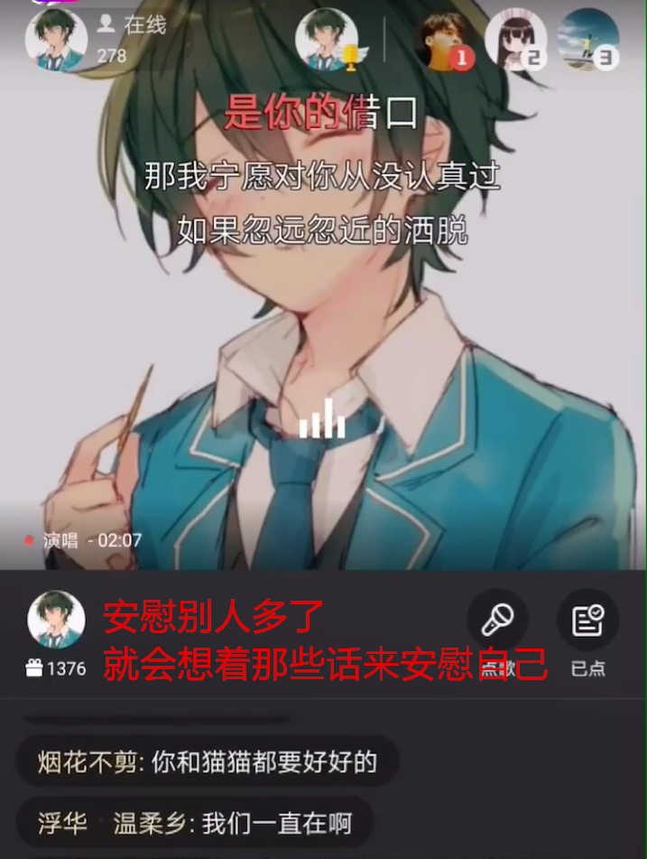 听到伪装在直播间的真情流露,粉丝一致安慰最好的狗哥,而狗哥则表示他安慰别人多了自己就会想着那些话来安慰自己,很难受。