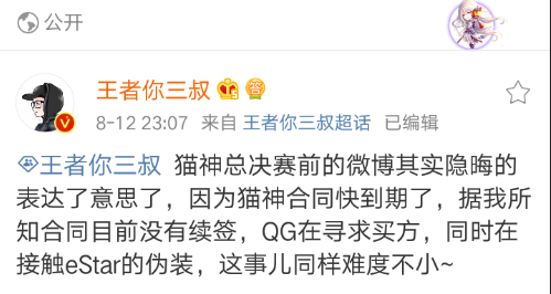 而在转会窗开启的第一时间,知名媒体人王者你三叔也是第一时间爆料伪装或有转会的可能,结合伪装自己的话语或状态,转会,或许也不是没有可能。