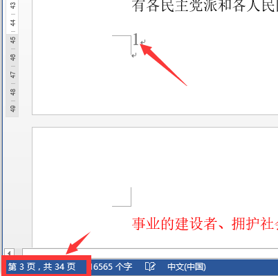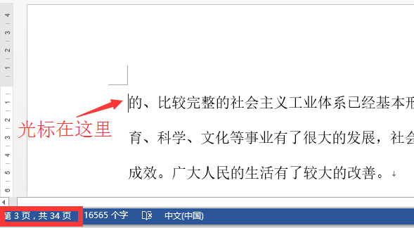第一步:将光标移动到开始想开始页码页面中的最前面,比如我想在第三页开始显示页码,就将光标移动到第三页的最前面(图2)