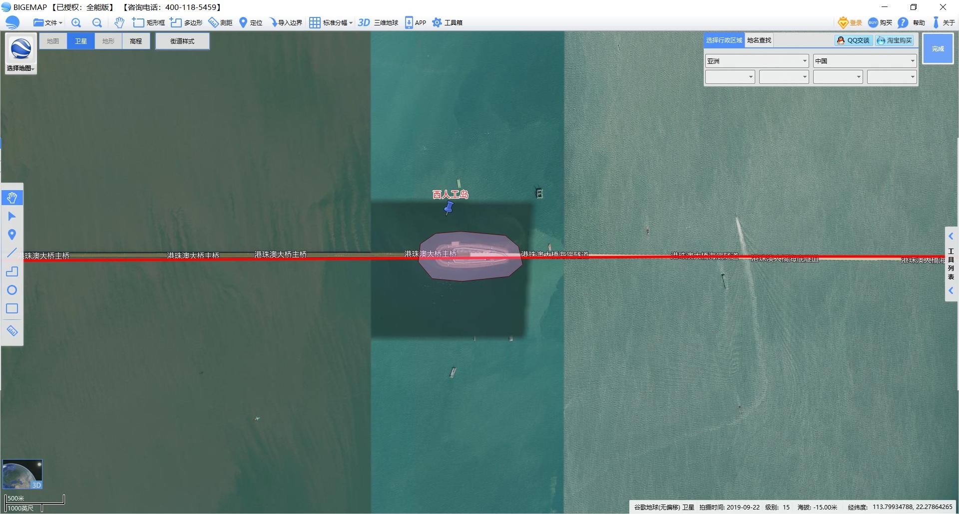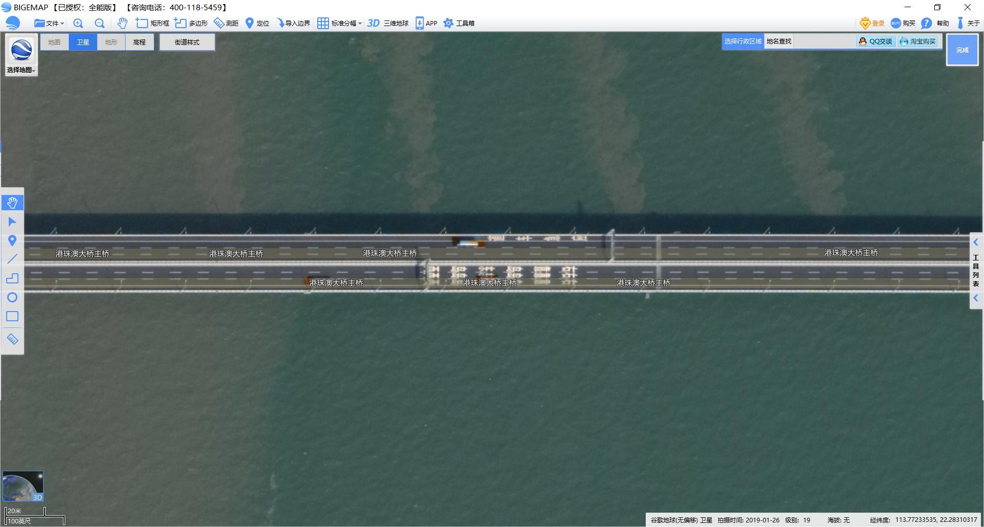 从BIGEMAP谷歌卫星地图上看港珠澳大桥主桥面