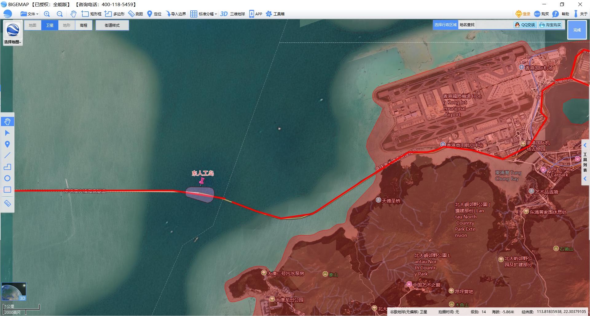 BIGEMAP上的香港口岸人工岛卫星地图影像