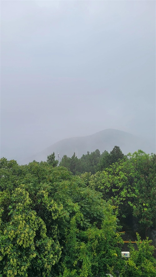 尽管下着小雨,我看到一路上有不少游人登山。当我来到观景台的时候,看到好多人在拍照。