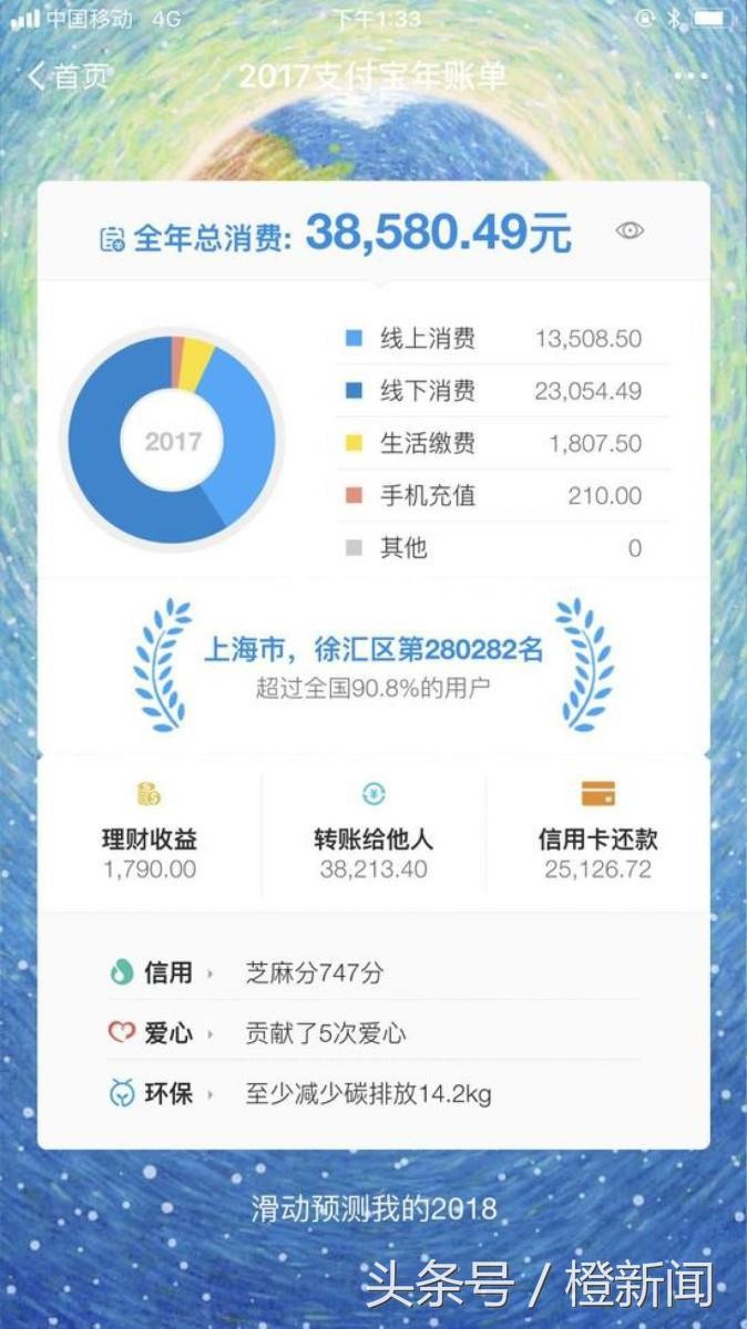 支付宝年度帐单。图:互联网