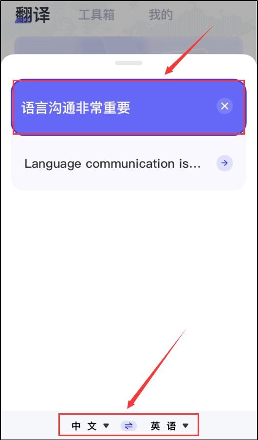 步骤二 我们在文字栏中中输入要翻译的中文,这里翻译的是语言沟通非常重要这句话,然后设置翻译语言进行翻译。将中文翻译成英文。