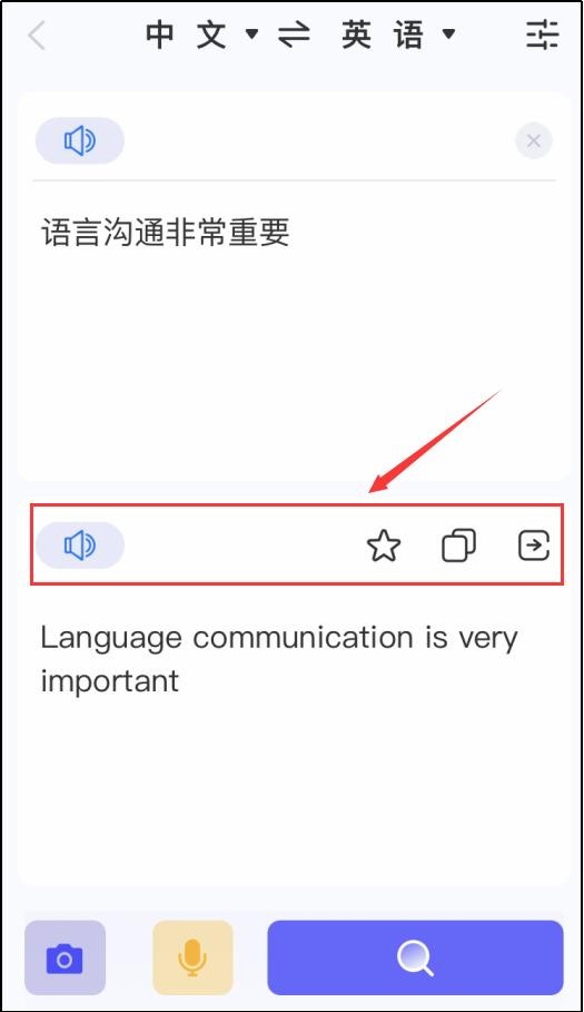 步骤三 翻译完成后,我们可以看到翻译后的中英文对比,也可以选择朗读翻译后的结果或者是复制和收藏翻译后的文字,还可以导出翻译结果。