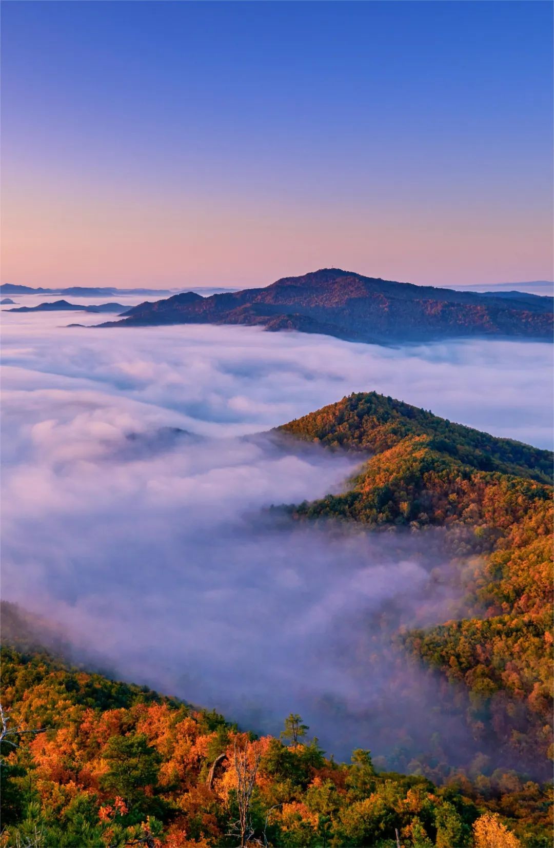 在群山与云雾之间,就像花的海洋。