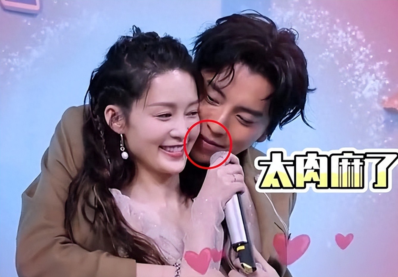 这一系列亲密的举动让李沁倍感尴尬,她想躲避却因正在录节目而不能任意行动。