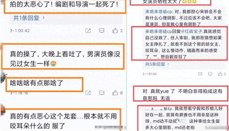 那名男演员亲吻了宋轶的耳朵,还把她的衣服脱到锁骨处。更令人惊讶的是,剧本竟然要求女主角对这个侮辱毫不反抗。试问,哪位女性会选择忍受这样的屈辱?
