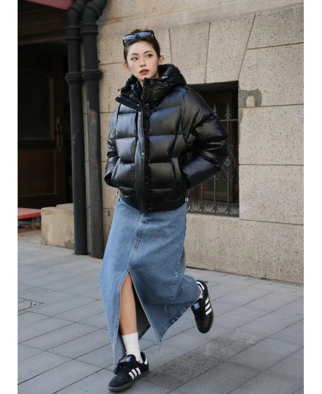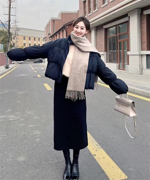 第九种搭配方法:黑色羽绒服/毛衣+半身裙