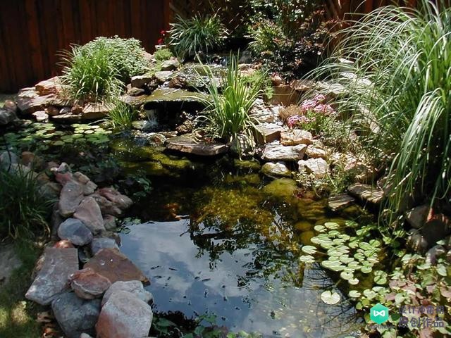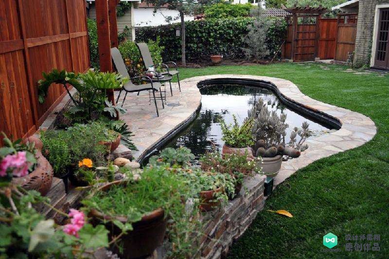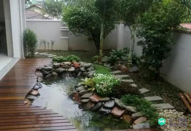 如果家里的院子比较小,可以选择在边缘一角建一个小鱼池,周围用景观石和植物装饰。