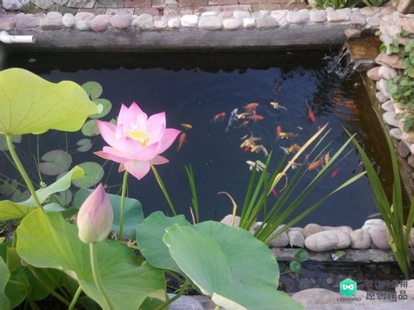 大鱼池周围只有种植的植物和景观石看起来会有些单调,可以在鱼池里面养一些植物。例如伞草、荷花、水葱、再力花、千屈菜、菖蒲、花叶芦竹等。