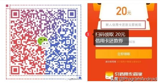 20元还款券步骤1.扫码下载 51信用卡 app。2.注册登陆,然后领取20元信用卡还款券。