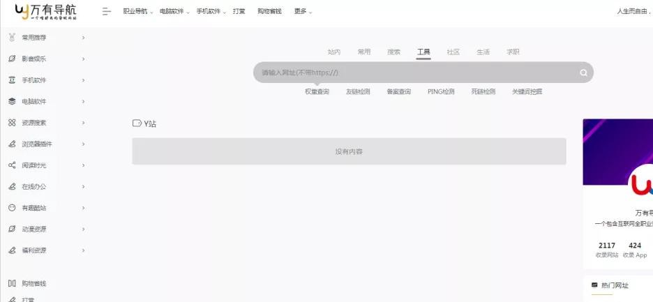 这是一个导航类的网站,和快点搜比较类似,不过,万有导航收集的各类资源,基本都是精品,非常好用。