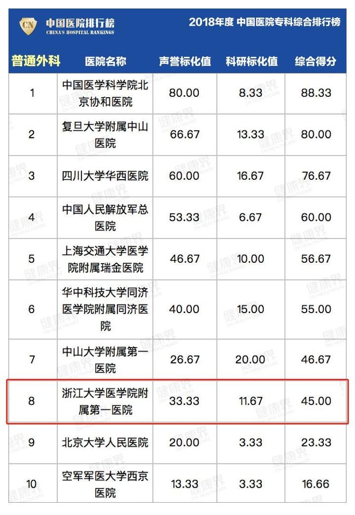 (原题为《持续进步!2018年度中国医院排行榜浙大一院综合排名全国第14,华东第3,浙江第一,6大专科进入前10,12大专科获专科声誉提名》。编辑张钟文)