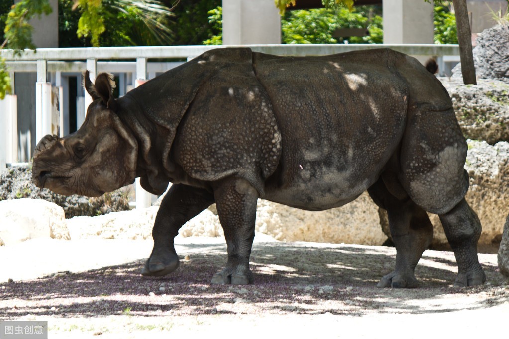 印度犀牛(学名Rhinoceros unicornis)目前主要分布在尼泊尔和印度的阿萨姆邦,栖息于草原、森林和喜马拉雅山附近,野外不足2500头,处于濒危状态。属于奇蹄目犀科独角犀属,与数量更为稀少的爪哇犀牛是近亲。印度犀牛奔跑时速可达55公里/小时,并且游泳技能优秀。印度犀牛的听觉和嗅觉都极佳,而视力相对较差。