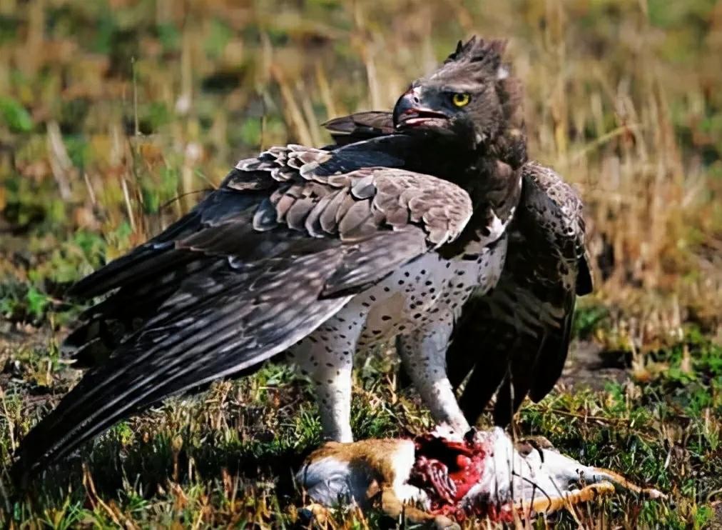 综上所述,猛雕是非洲非常凶猛的一种猛禽,它们通常都会从高处或者空中俯冲下来捕捉猎物,有时候也会抢夺其他食肉动物的猎物,而这些动物也知道猛雕的厉害,基本上都不敢与猛雕正面对抗,然后就快速逃离了。