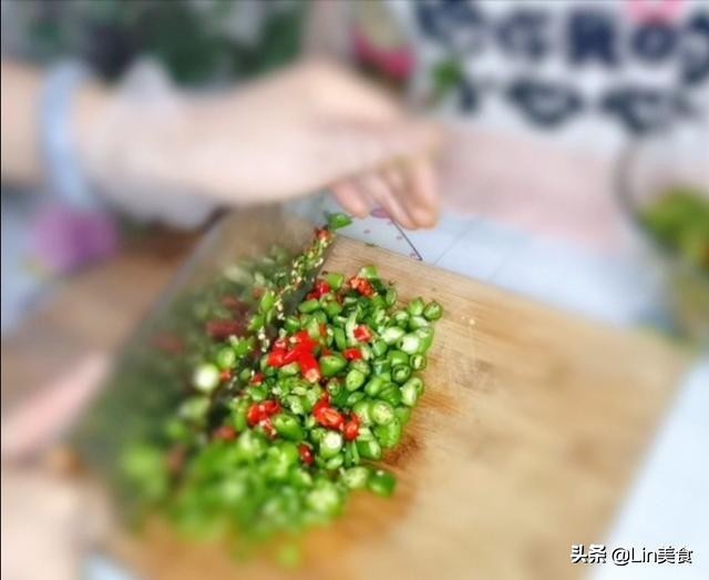 剁辣椒记得戴手套,防止剁完辣椒手火辣辣的烧得难受。