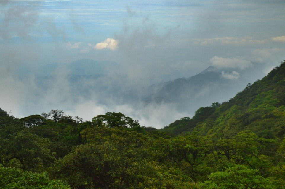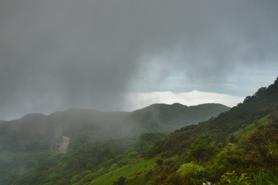 感觉我们这次登山的好运气已经用完,刚开始登山的时候天气晴朗,烈日高照,蓝天白云。可是当我们费了九牛二虎之力差不多到山顶时,却突然下起雨来,顿时到处都是雾蒙蒙的,远处的风景根本看不了。可是当我们下山之后,天又突然放晴了……老天爷不带这么玩人的……