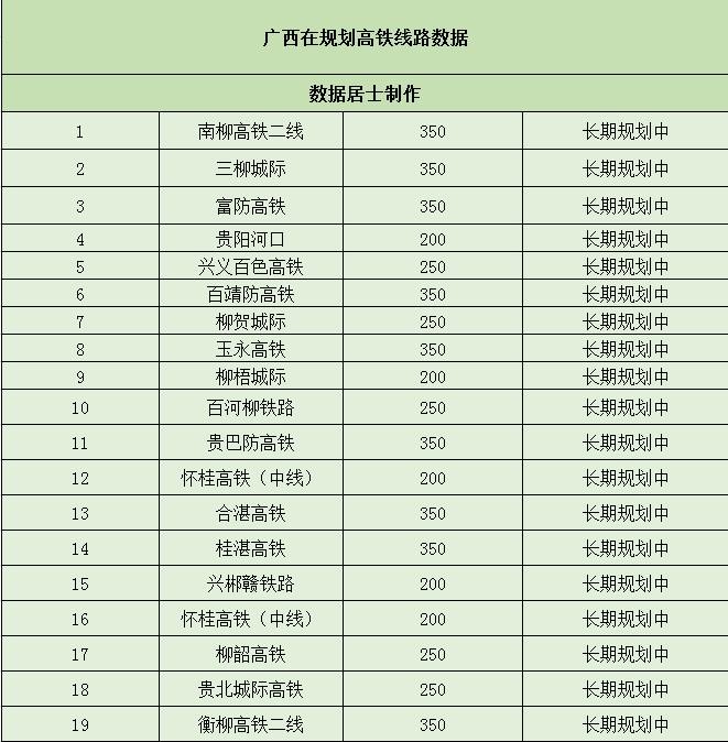 广西新规划建设25条高铁线路,有6条在建设,还有19条还在规划中