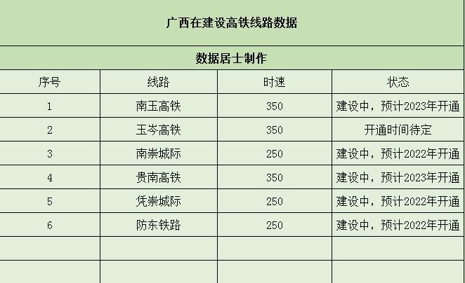 数据居士看法:能说出上面观点的人我认为有二种,一是他们本地的高铁建设并不怎么样,甚至还没有高铁,所以看到广西那么多高铁站就比较“酸”,在改革开放初期广西是被遗忘的地区,当初大家都已经在搞经济发展了,而广西还在为我国的稳定而斗争,虽然广西的经济现在并不是很好的,但是广西的贡献大家都是有目共睹的,目前广西的发展比较不错的三大区域分别是以首府南宁为首的都市圈和柳桂地区以及北部湾地区的三个地级市,这几个地区不仅在省内属于最好的,即使放在全国所有地区中也是属于中等偏上的,广西只要把靠近广东的梧贺玉贵等几个地级市发展起来,那么整个广西的排名在全国进一步提升。加快相对较差的几个地级市之外继续加大三大零头区域的经济发展,广西的未来可期,而高铁的建设对于广西来说至关重要①便利的交通和能够快速融入珠三角地区,让大量的资金融入广西,②广西巨大的市场潜力能够借助高铁让企业家了解广西地区投资广西地区,能够加强广西的招商引资③广西让本地的企业走出去,增强其在市场是的影响力,比如以柳州为代表的制造业企业,这些企业为广西带来大量的税收四高铁是国家的基础设施,是连接各地的重要通道,使得广西快速融入全国各地!