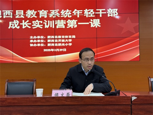 肥西县教育系统年轻干部成长实训营首课开讲3月29日,肥西县教育系统年轻干部成长实训营启动仪式暨首期专题培训在肥光小学举行。县教体局党委书记、局长徐润青以"教育强县建设与年轻干部使命"为题讲授开班第一课,为全县教育新生代力量擘画成长蓝图。