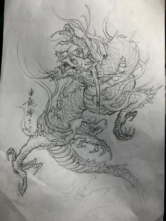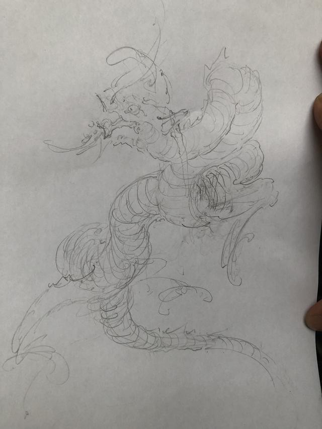 铅笔画龙起形时用硬一点的铅笔如:HB。画明暗结构时可以用2B以上的铅笔,因为会软一些能更好的表现肌理和明暗。最主要的是对结构的理解和掌握而不是工具。造型结构掌握了用铅笔,毛笔,水彩,碳条,油画棒等等都是可以的。(中国龙)