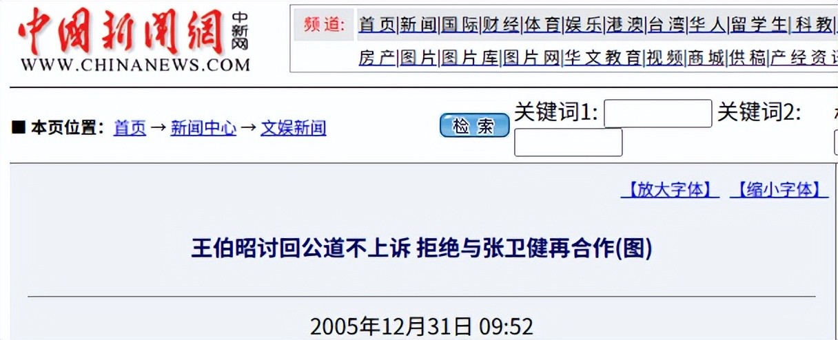 中国新闻网:王伯昭讨回公道不上诉 拒绝与张卫健再合作(图)