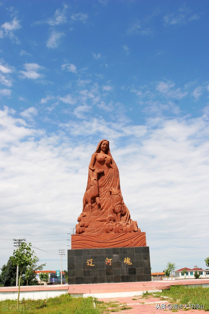 在双辽市辽河向西,辽河急冲冲的就出了吉林省,进入内蒙古,大概120公里的地方有一个地方内蒙古通辽市,辽河从西往东穿过了通辽市,辽河一直往西,通辽以西大概80公里处开鲁县,成为"刀”左边一撇的河一横的起点,一横一路向西的就是西拉木伦河,一撇就是老哈河,两河在开鲁县汇合. 整个正源的“刀"字形完成.