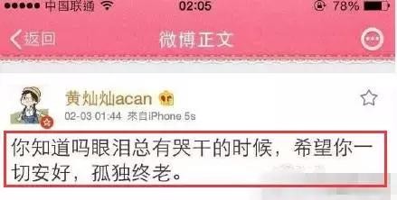 不过,在一起后,黄灿灿曾发过一条疑似宣布分手的微博。