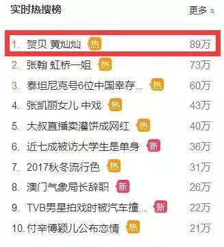 到了晚上,“黄灿灿+贺贝”直冲热搜榜第一。