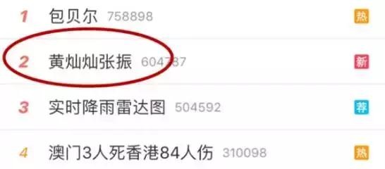 早上,热搜榜前列就出现了黄灿灿和张振的名字。